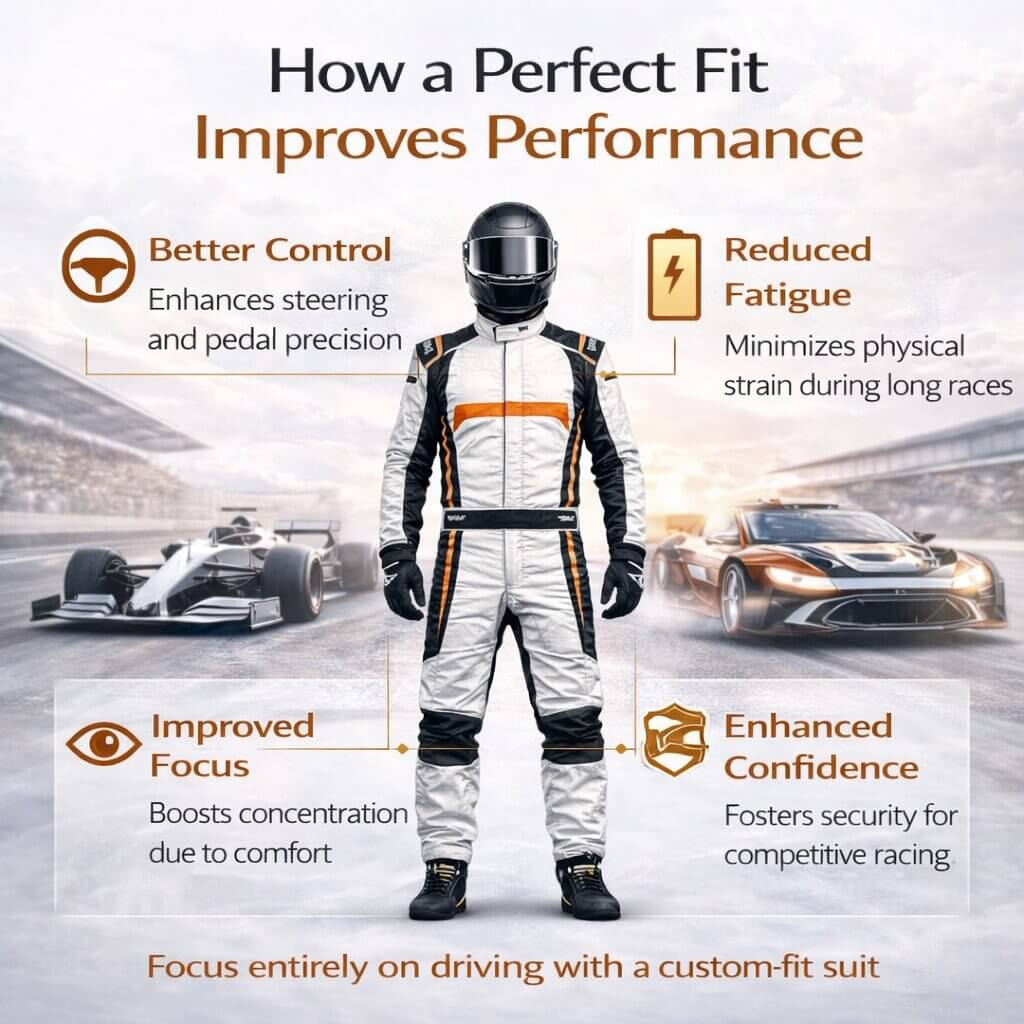 A well-fitted racing suit directly impacts driver performance.