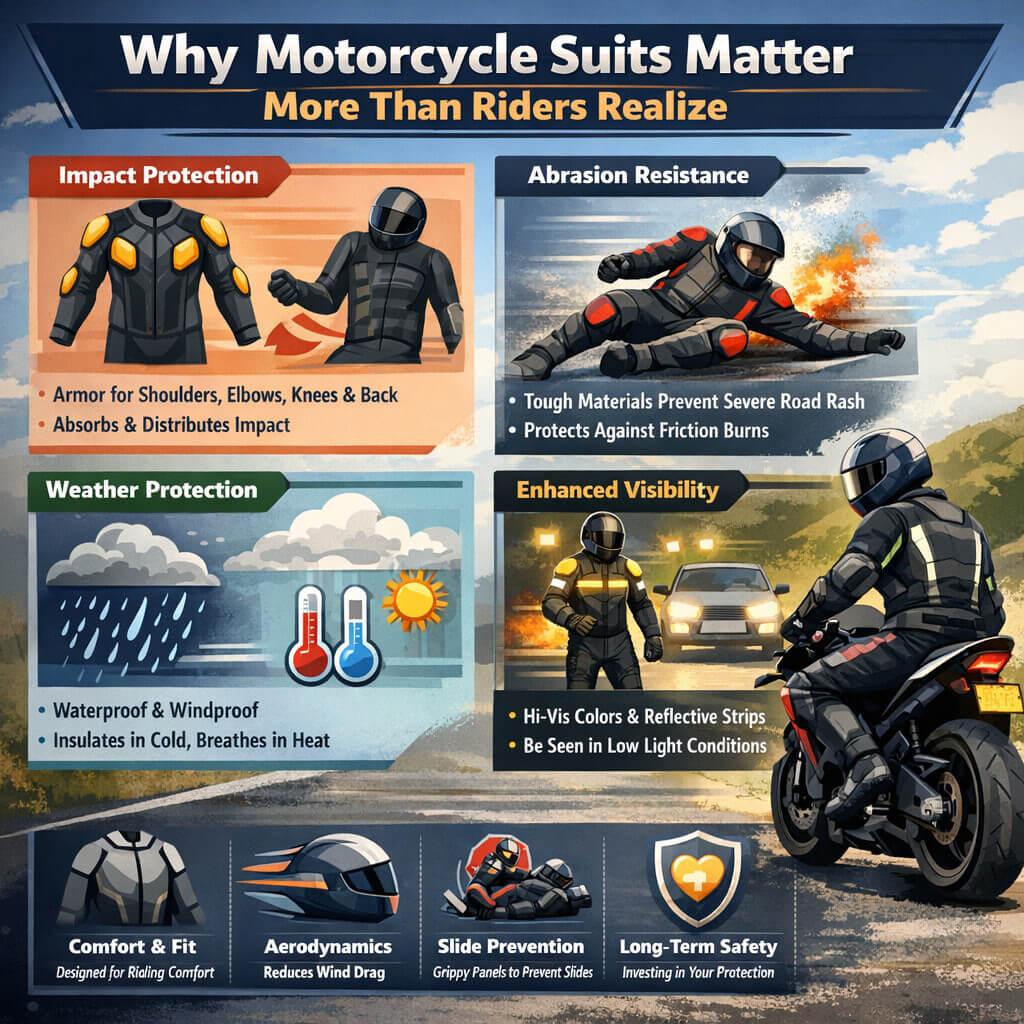 This is why professional riders and safety experts insist on CE-certified, well-constructed racing suits.
