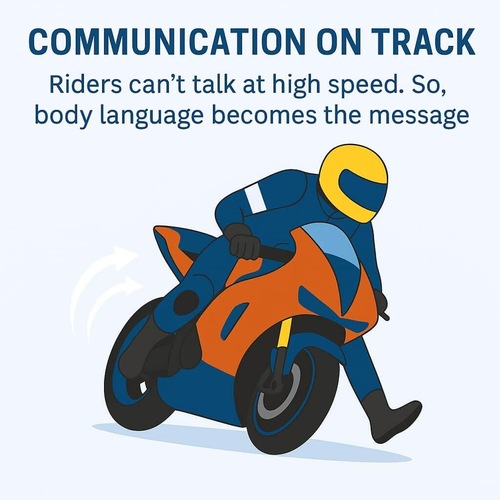 On a crowded track, that tiny signal helps prevent collisions. Other riders see the leg drop and know — “Okay, they’re slowing for the inside line.”